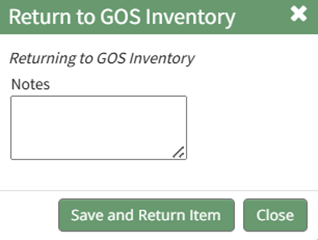 Select the “Save and Return Item” button for the unique item to be returned to the inventory.