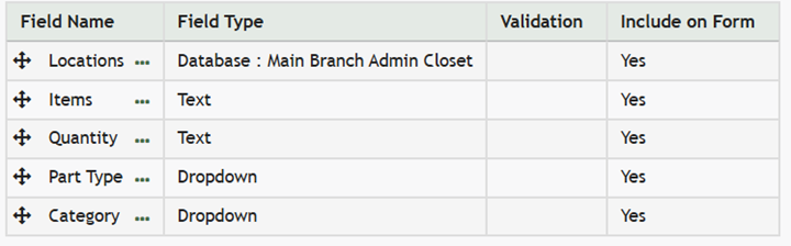 Locations Database | None | A database must be selected as a locations inventory. Multiple databases can be utilized if desired. There are no fields that must be specifically included for functionality. |