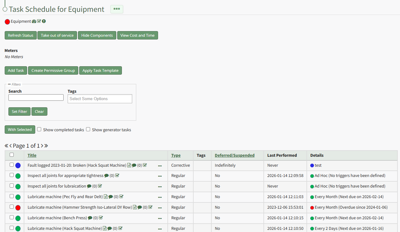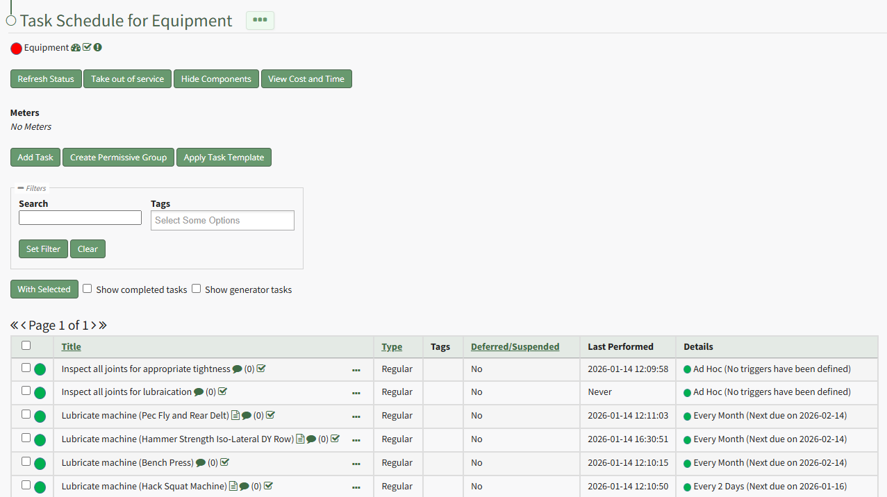 To refresh the task schedule table with any task updates since the Task Schedule Page was opened, select the Refresh Status beneath the Task Schedule Page header.