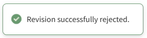 A pop-up confirms that the revision was successfully rejected.