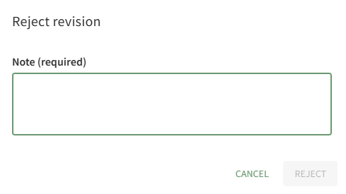 Select the Reject option, opening the Reject Revision Modal.