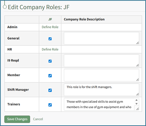 Select the “Edit Company Roles” button to open the Company Roles Description Table.