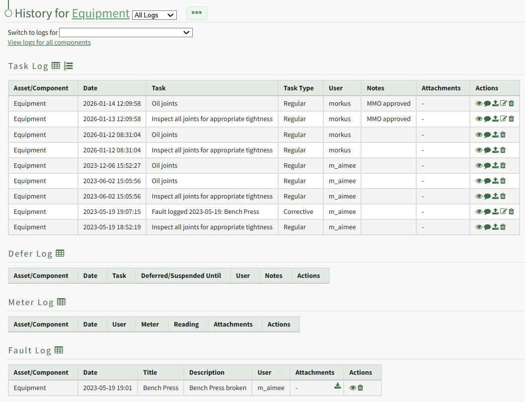 To run reports on historical task records, open the relevant asset's Asset History Page.