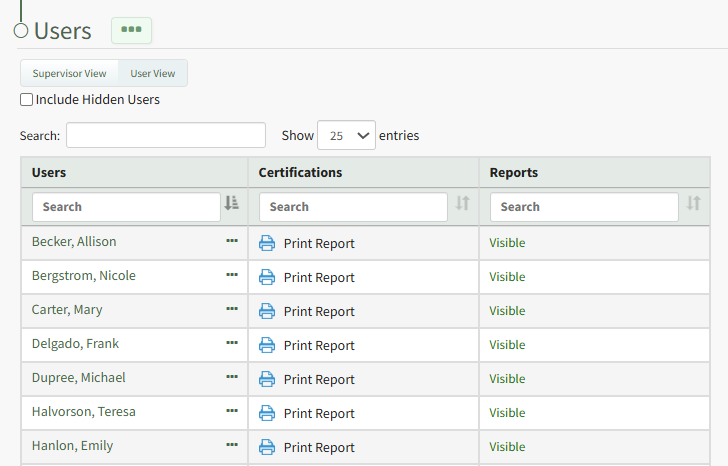 To send a user an email notification regarding a specific certification, you must open the supervised user's Certifications Details Page. To do so, select Users in the People Module from the Main Menu.