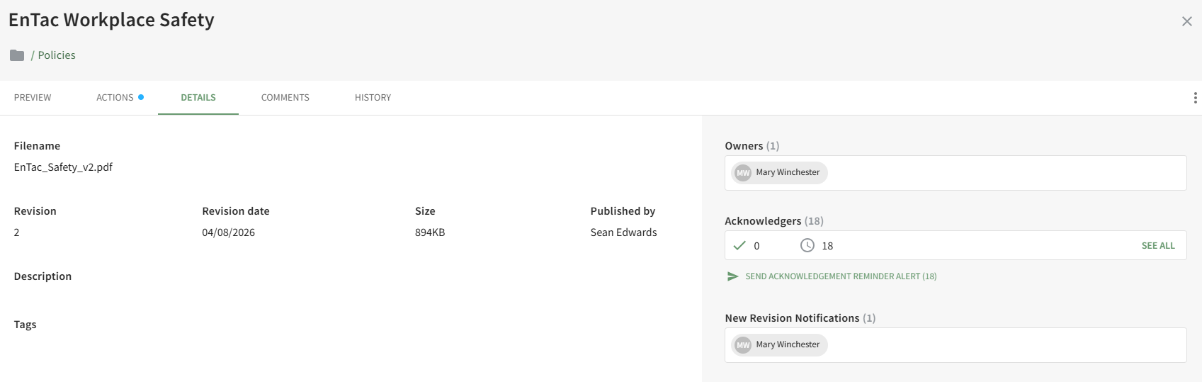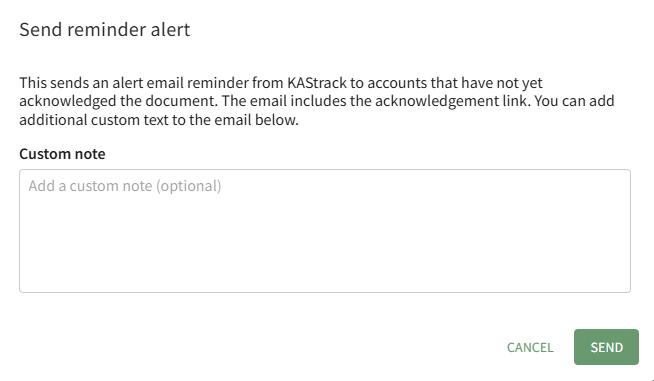 You have the option to add a custom note to the email alert reminder that will be sent to all accounts that have not yet acknowledged the document.