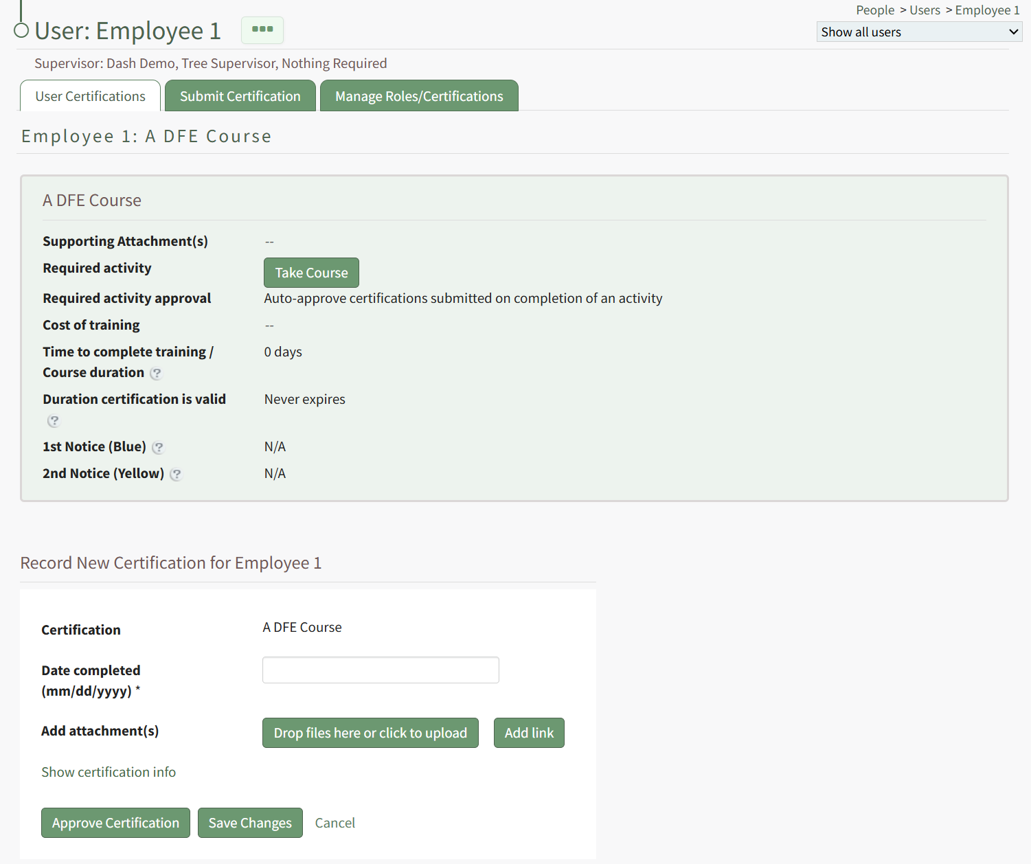 To set the certification/competency as complete, click “Approve Certification”.