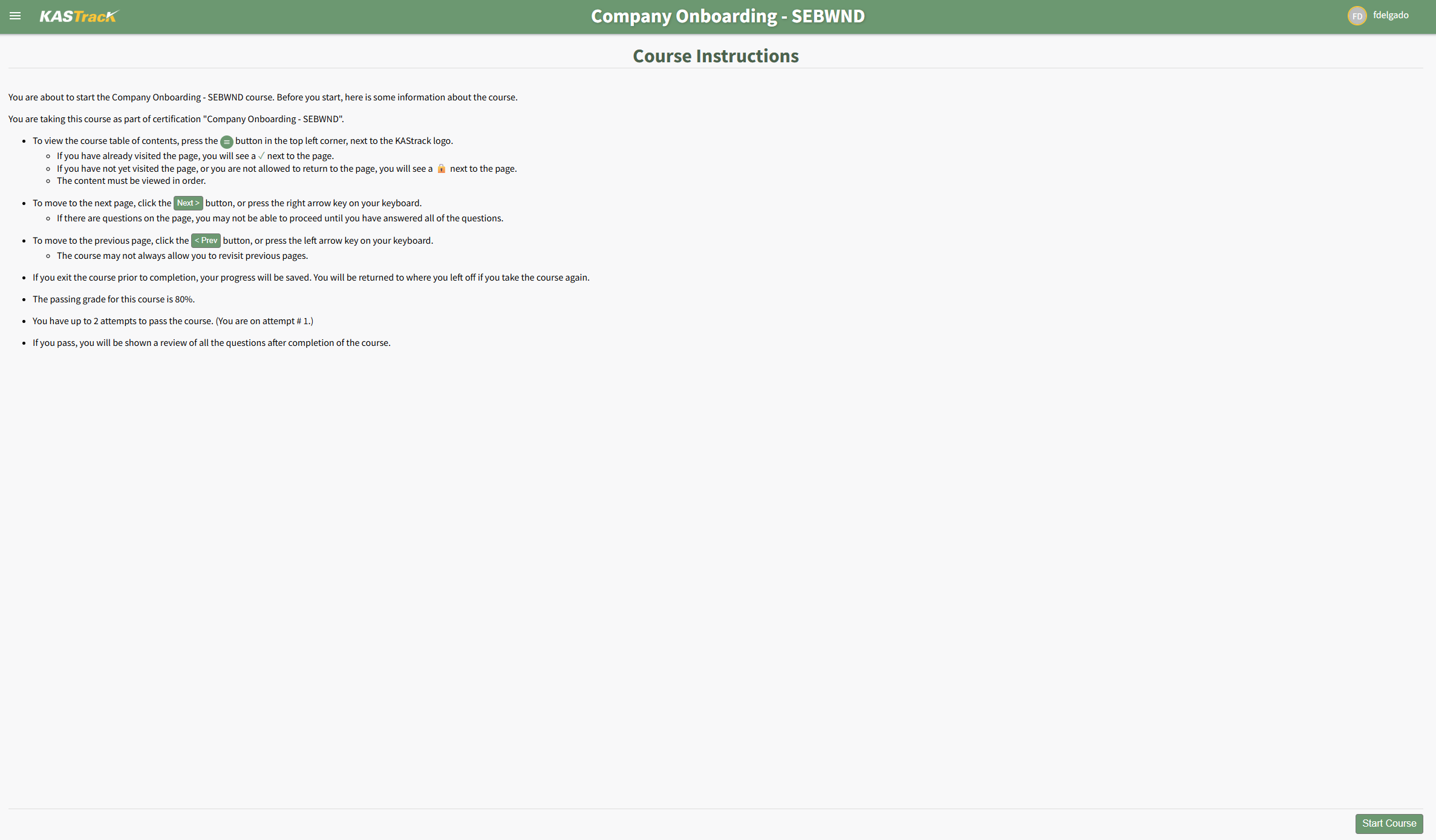 Select Take Course. If the course was created in KAStrack's Courses Module, the option to Take Course will open the Course Instructions Page.