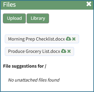 Any files associated with the task are shown on the Files modal.