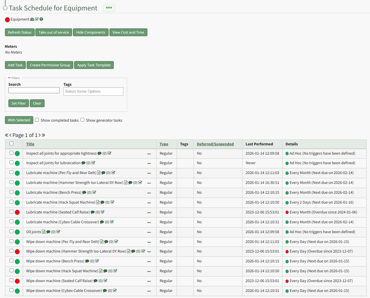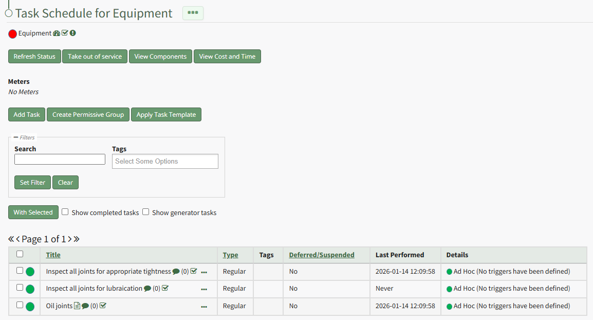 To view all component's tasks on an asset's task schedule page, open the Task Schedule Page of the asset whose components you wish to view.