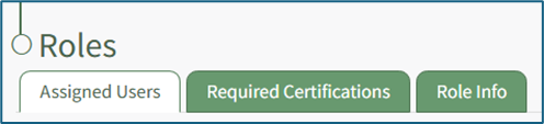 Once the role has been defined, the Certifications Role Table will display a clickable link to "View/Edit (#)". The number in parenthesis indicates the number of users that have been assigned to the specific certification role. When clicked, the system opens a specific certification role's Details Page. There are three tabs associated with a Role Details Page. Each are briefly explained in the table below.