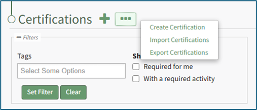 Certifications Page Context Menu Option Explanation