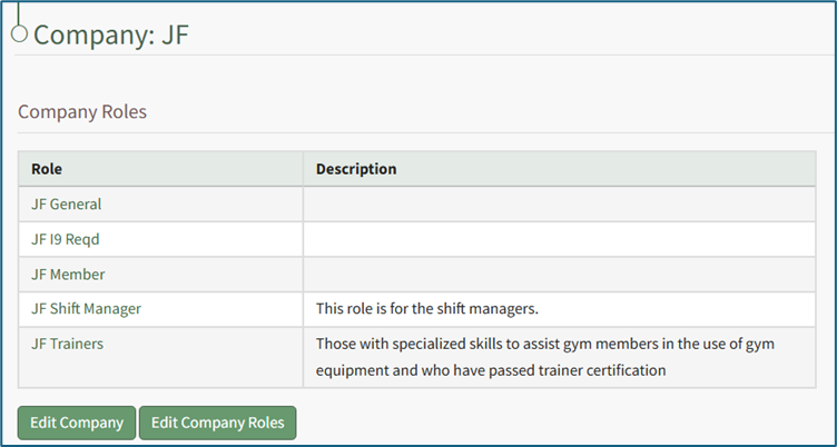 Clicking on the name of a Company will open the company's Details Page that displays the Company Roles with their description.
