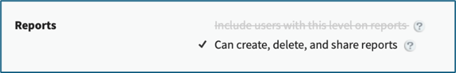If the Reports permission “Include users with this level on reports” is given, then users assigned this permission will appear in the matrix, on e-mail reports, and in shared reports. If the Reports permission “Can create, delete, and share reports” is given, the permission includes supervisor and shared reports.