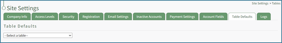 The Table Defaults Tab in the Site Settings Module allows for the customization of 8 different tables in KAStrack.